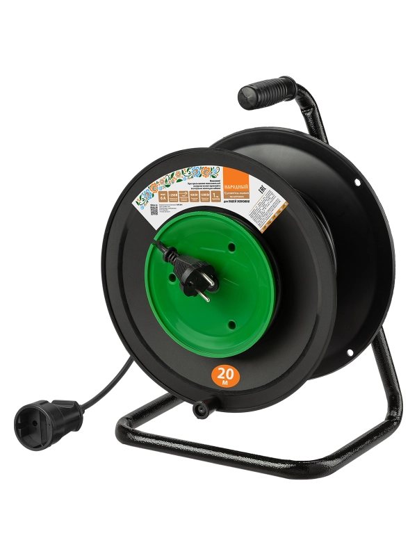 Удлинитель на катушке силовой народный с 1 выносной роз. ПВС 1300 Вт б/з, 20м