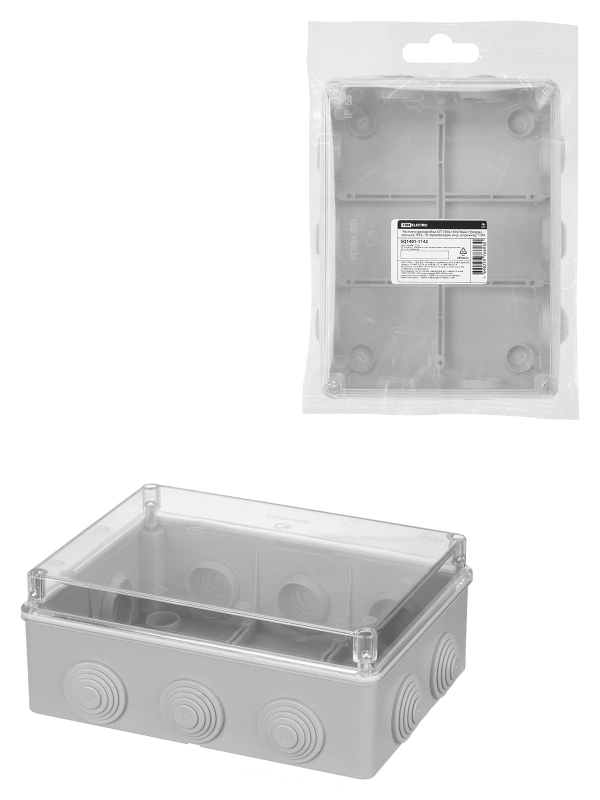 Распаячная коробка ОП 190х140х70мм, прозрач. крышка, IP55, 10 гермовводов, инд. штрихкод, TDM
