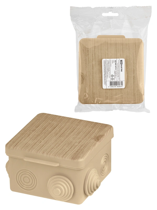 Распаячная коробка ОП 80х80х50мм, крышка, "ЭКО" (сосна), IP54, 7вх. инд. штрихкод TDM