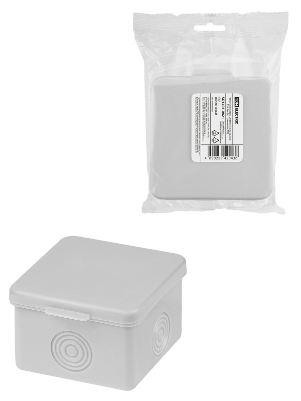 Распаячная коробка ОП 65х65х50мм, крышка, IP54, 4вх., без гермовводов, инд. штрихкод TDM