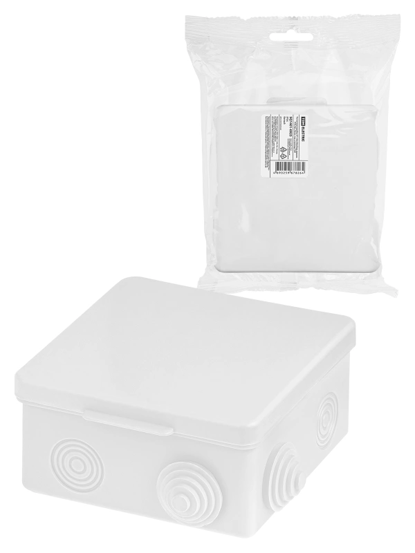 Распаячная коробка ОП 100х100х55мм, крышка, IP54, 8вх., белая, инд. штрихкод TDM