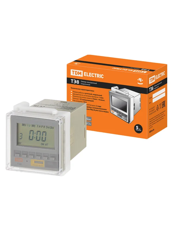 Таймер электронный цокольный в крышку щитка ТЭ8-1мин/7дн-8on/off-16А-8Ц/Щ TDM