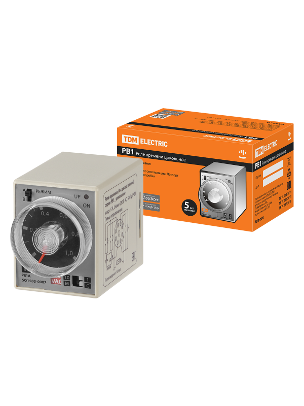Реле времени 4-диапазоннное 2 режима цокольное РВ1A-2реж-1сек/10мин-5А-230В-8Ц TDM
