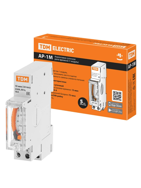 Аналоговое суточное реле 1 модуль на DIN-рейку АР-1М-15мин/24ч-16А-DIN TDM