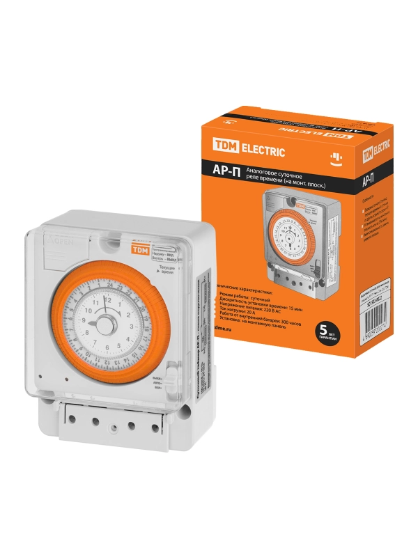 Аналоговое суточное реле монтажная плоскость АР-П-15мин/24ч-20А TDM