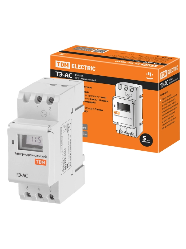 Таймер электронный на DIN-рейку астрономический ТЭ-АС-1мин/24ч-8on/off-16А-DIN TDM
