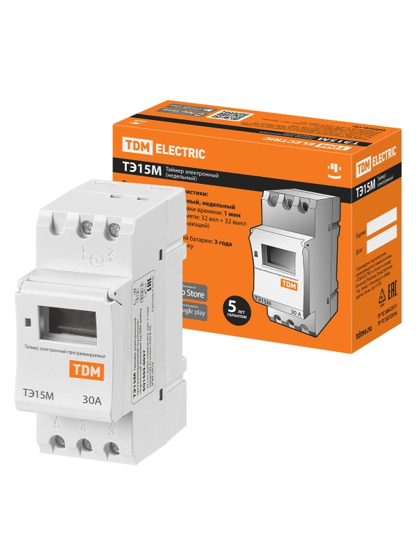 TDM Таймер электронный ТЭ15М-1мин/7дн-32on/off-30А-DIN