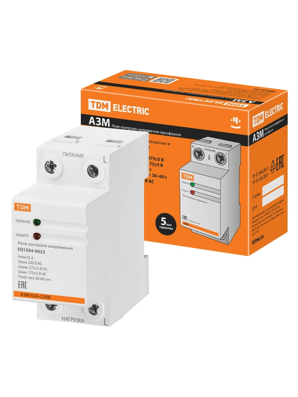 Реле напряжения 1ф серии АЗМ 63А-230В TDM