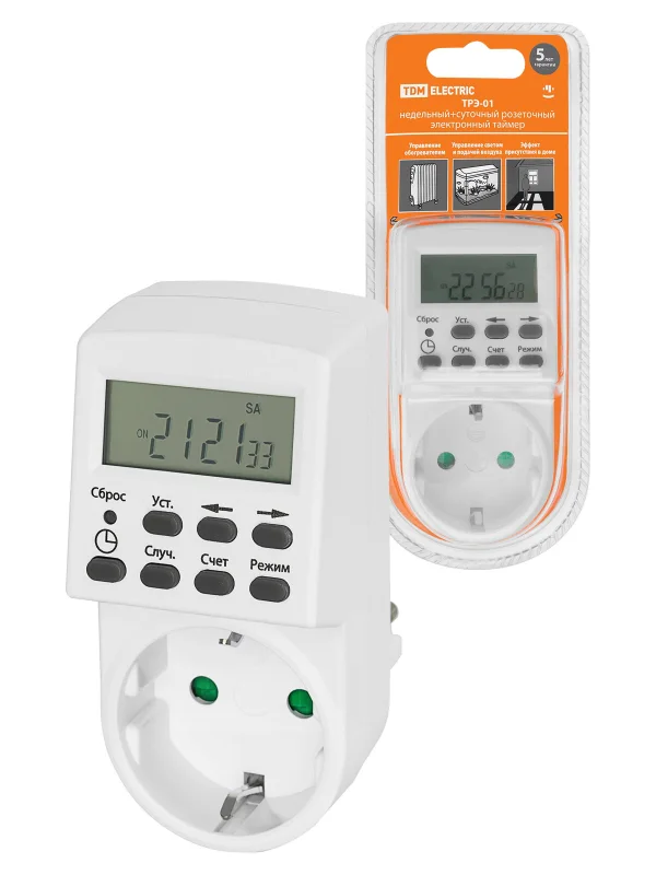 Таймер розеточный электронный ТРЭ-01-1мин/7дн-20on/off-16А (недельный) TDM