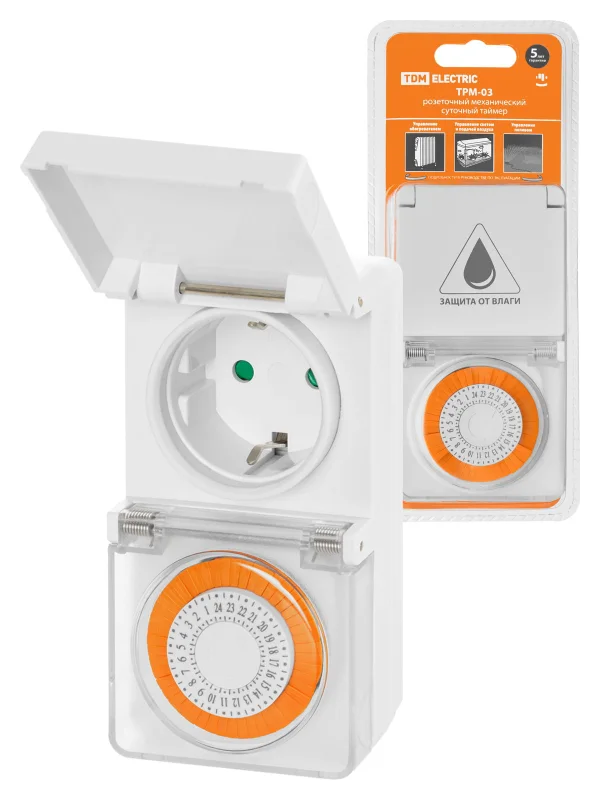 Таймер розеточный механический ТРМ-03-30мин/24ч-16А-IP44 (суточный, защита от влаги) TDM