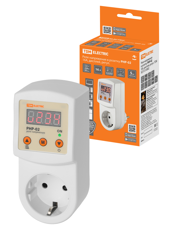Реле напряжения в розетку РНР-02, 16А, дисплей, регул., TDM