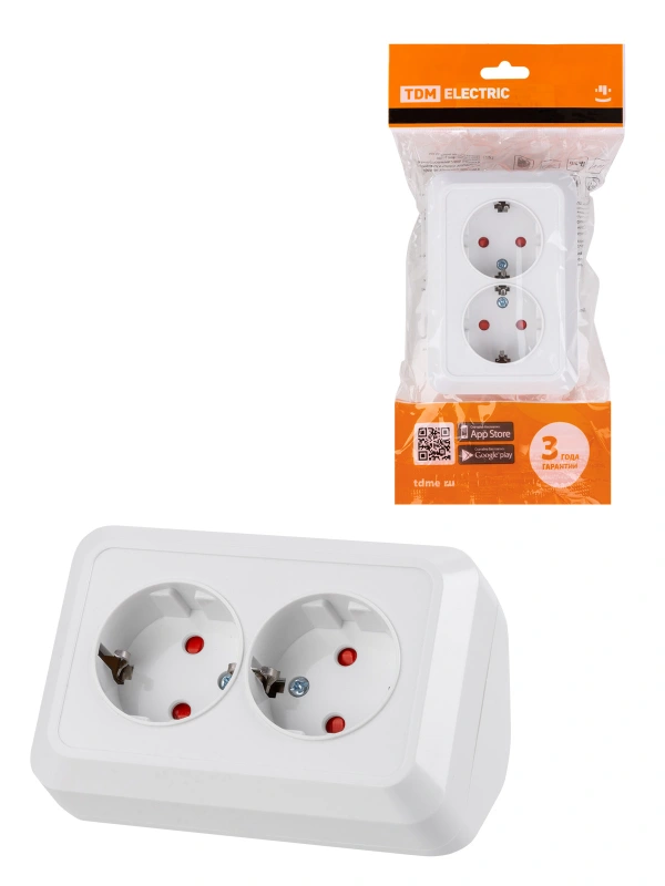 Розетка угловая двойная 2П+З открытой установки с з/ш IP20 250В 16А белая "Ладога" TDM