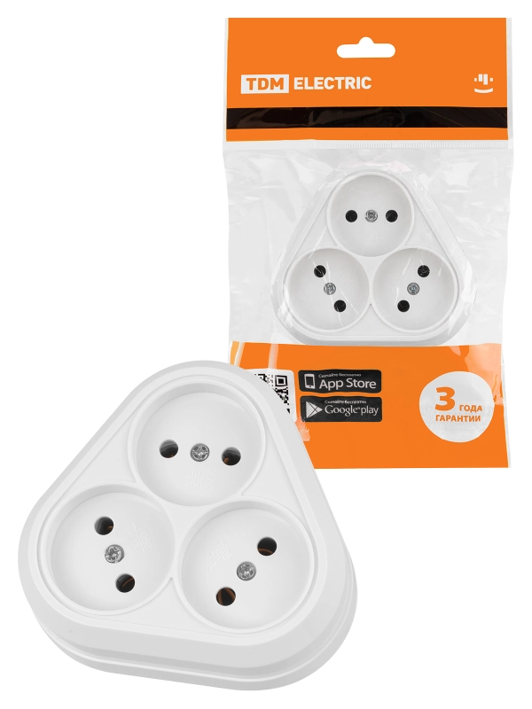Розетка треугольная 2П открытой установки IP20 10A белая "Ладога" TDM