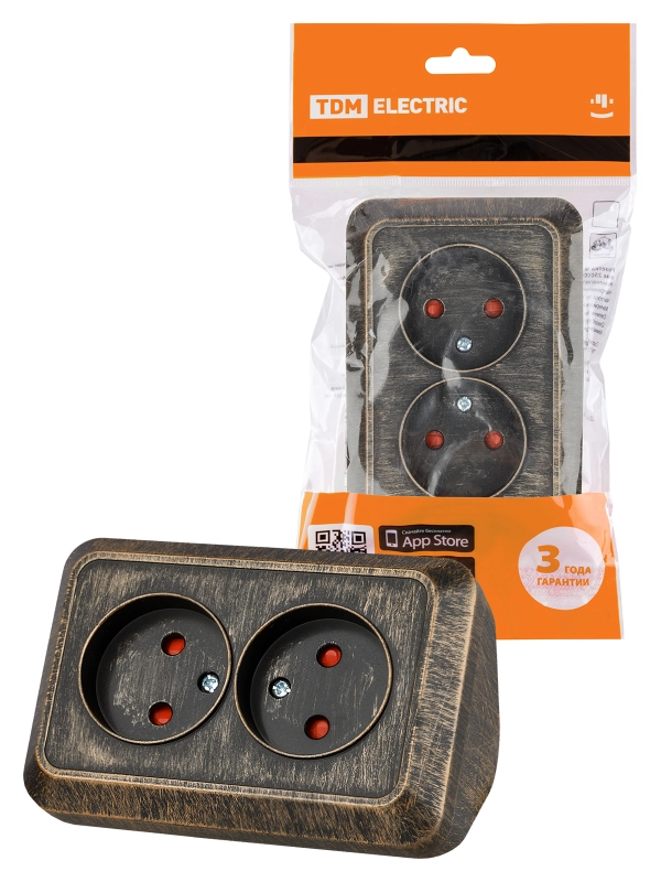 Розетка угловая двойная 2П открытой установки с з/ш IP20 250В 10А бронза "Ладога" TDM