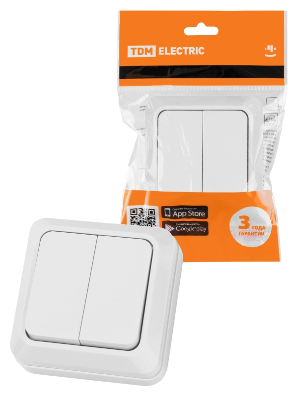Выключатель 2-кл. открытой установки IP20 10А, белый "Ладога" TDM