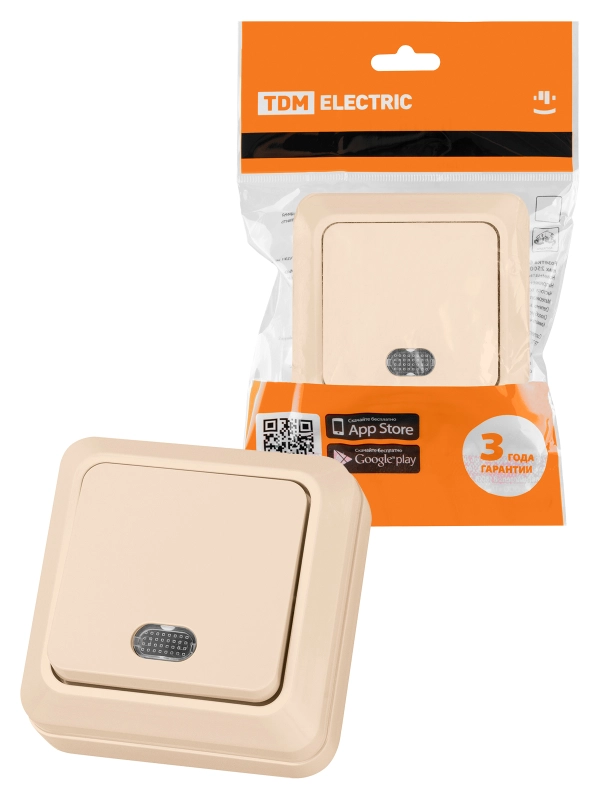 Выключатель 1-кл. открытой установки с подсветкой IP20 10А, сл. кость "Ладога" TDM