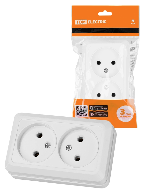 Розетка двойная 2П открытой установки IP20 10А, белая "Ладога" TDM
