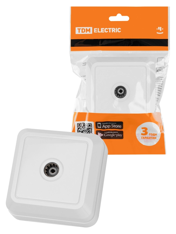 Розетка TВ простая (0-2400 Гц, "мама") открытой установки, IP20 белая "Ладога" TDM