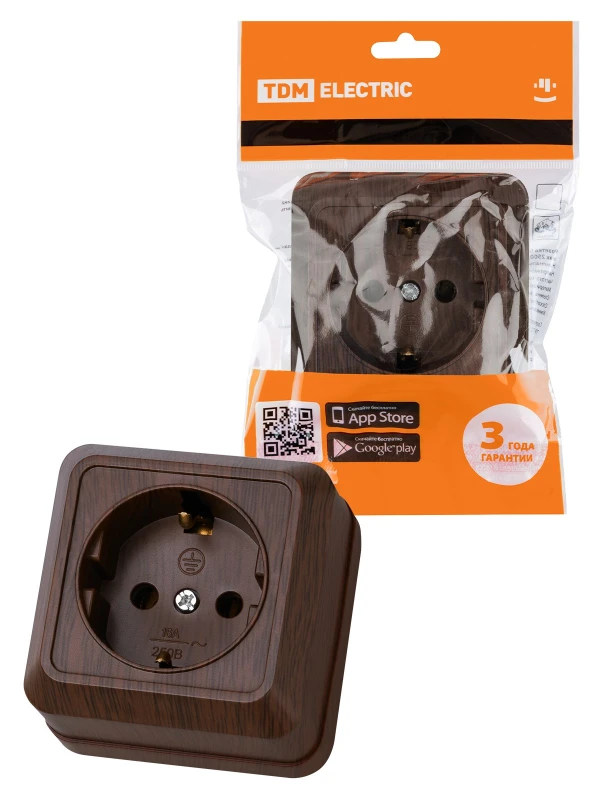 Розетка 2П+З открытой установки IP20 16А, бук "Ладога" TDM