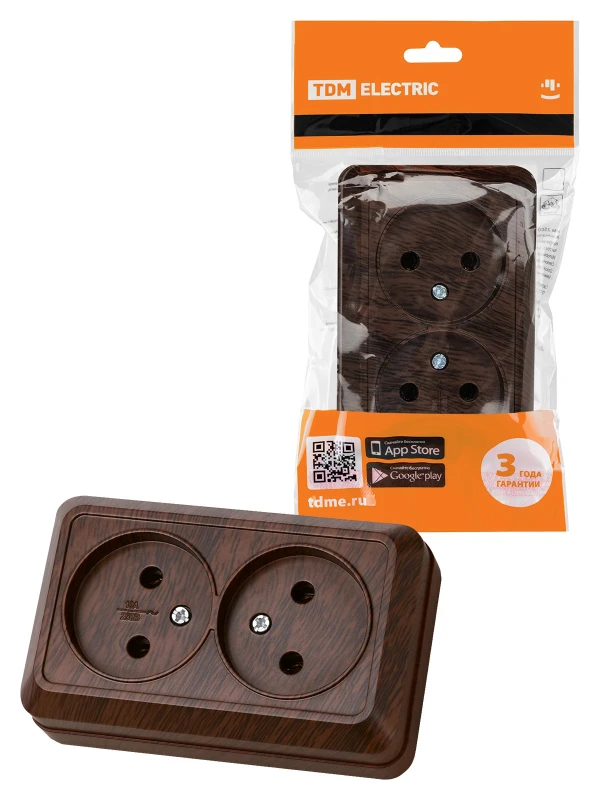 Розетка двойная 2П открытой установки IP20 10А, бук "Ладога" TDM