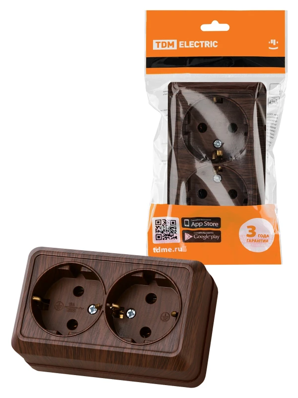Розетка двойная 2П+З открытой установки IP20 16А, бук "Ладога" TDM
