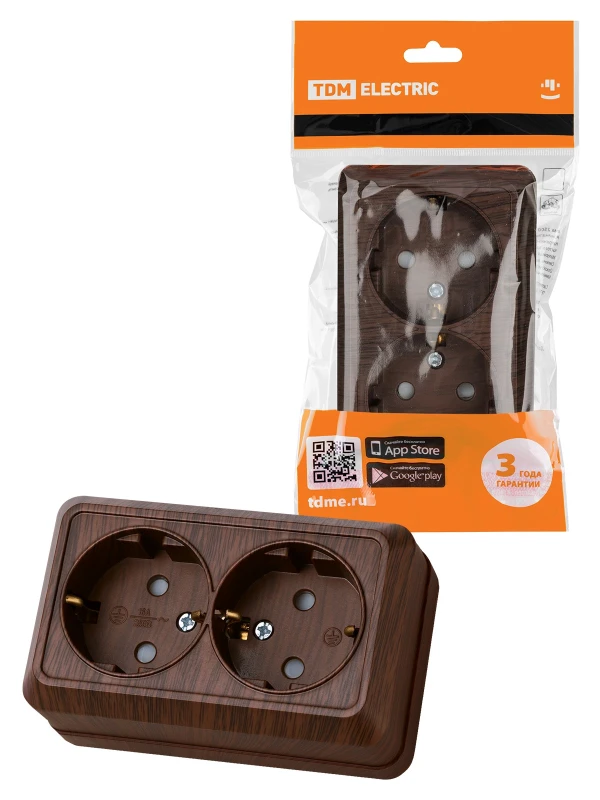 Розетка двойная 2П+З открытой установки с з/ш IP20 16А, бук "Ладога" TDM