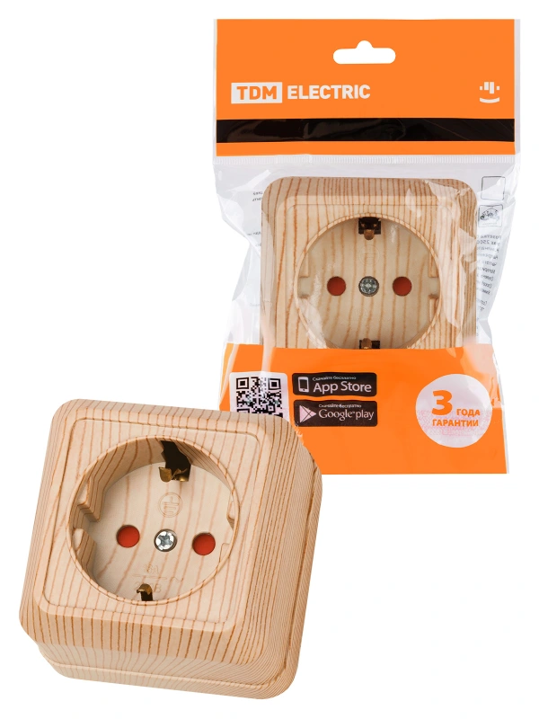 Розетка 2П+З открытой установки с з/ш IP20 16А, сосна "Ладога" TDM