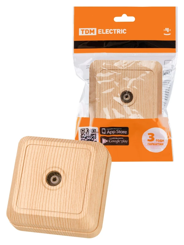 Розетка TВ простая (0-2400 Гц, "мама") открытой установки, IP20 сосна "Ладога" TDM