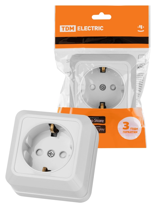Розетка 2П+З открытой установки с з/ш IP20 16А, белый "Ладога" TDM