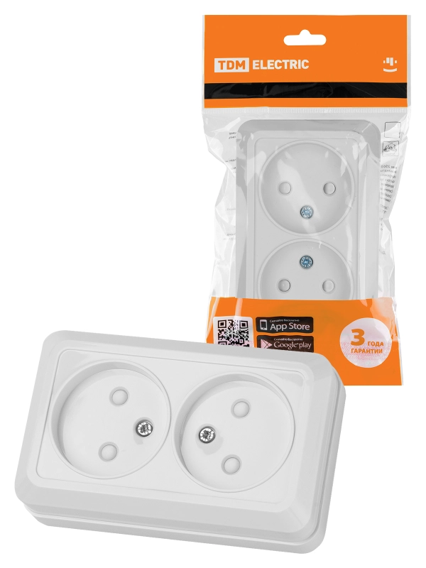 Розетка двойная 2П открытой установки с з/ш IP20 10А, белый "Ладога" TDM