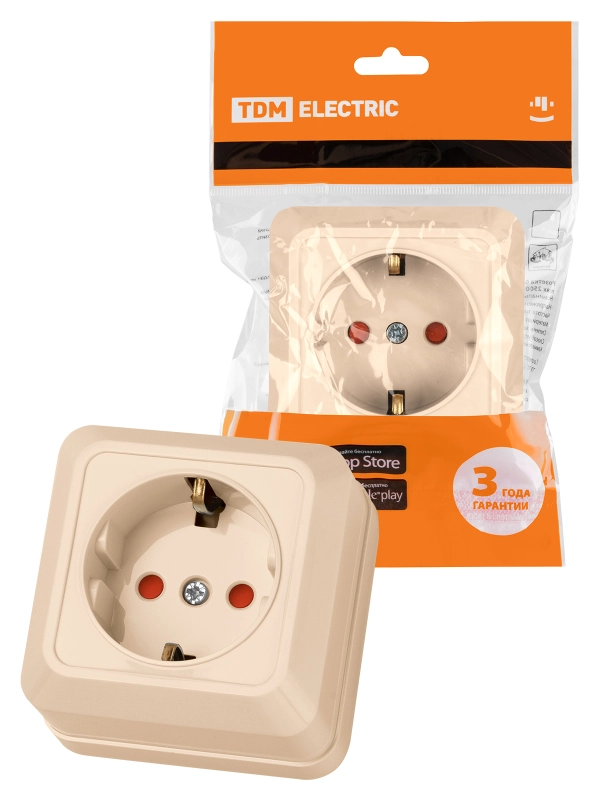 Розетка 2П+З открытой установки с з/ш IP20 16А, слоновая кость "Ладога" TDM