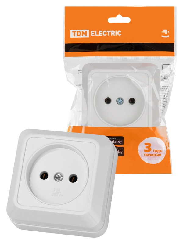 Розетка 2П открытой установки IP20 10А 250В (керамика) белая "Ладога" TDM