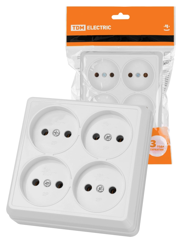 Розетка четырехместная 2П открытой установки IP20 10A белая "Ладога" TDM