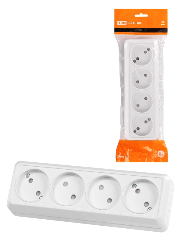 Розетка 4-х местная горизонтальная 2П открытой установки IP20 10A с з/ш белая "Ладога" TDM