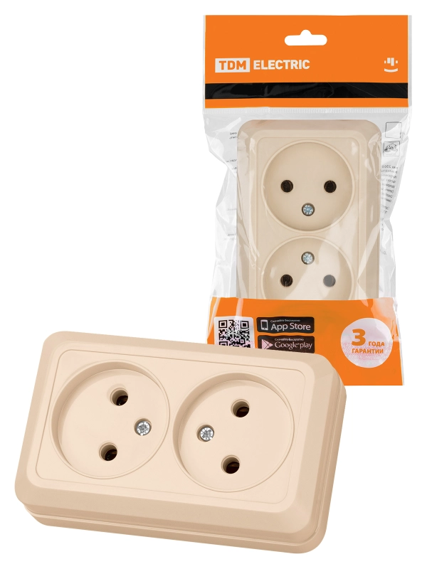 Розетка двойная 2П открытой установки IP20 10А 250В (керамика) сл. кость "Ладога" TDM