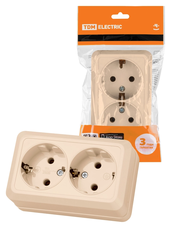 Розетка двойная 2П+3 открытой установки IP20 16А 250В (керамика) сл. кость "Ладога" TDM