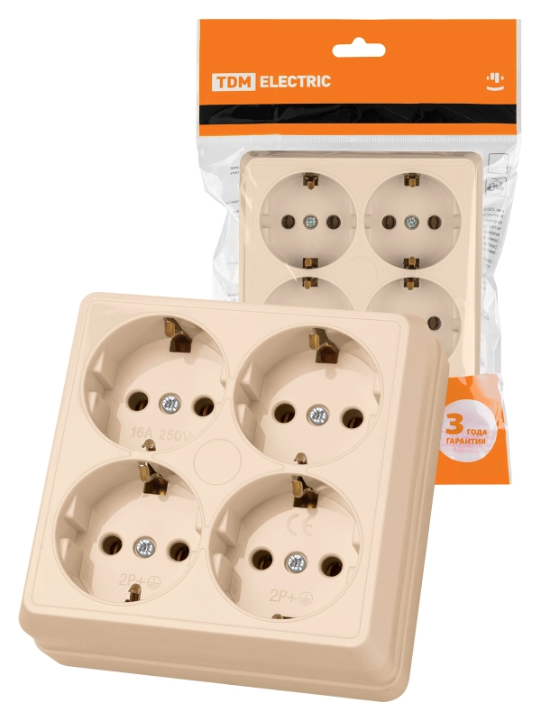 Розетка четырехместная 2П+3 открытой установки IP20 16A сл.кость "Ладога" TDM