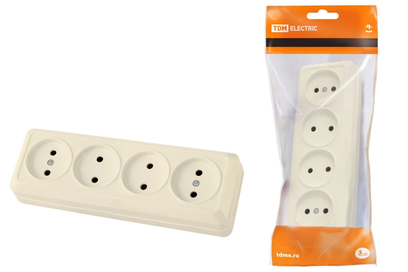 Розетка 4-х местная горизонтальная 2П открытой установки IP20 10A сл. кость "Ладога" TDM