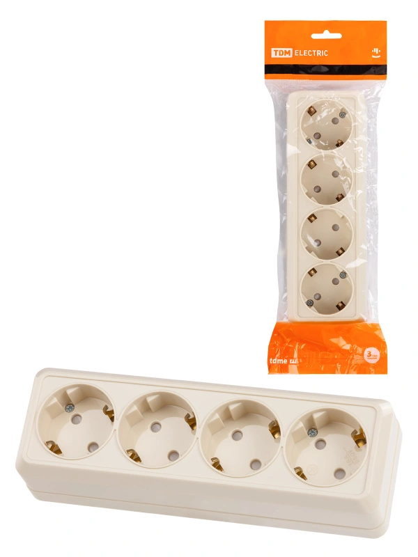 Розетка 4-х местная горизонтальная 2П+3 открытой установки IP20 16A с з/ш сл. кость "Ладога" TDM