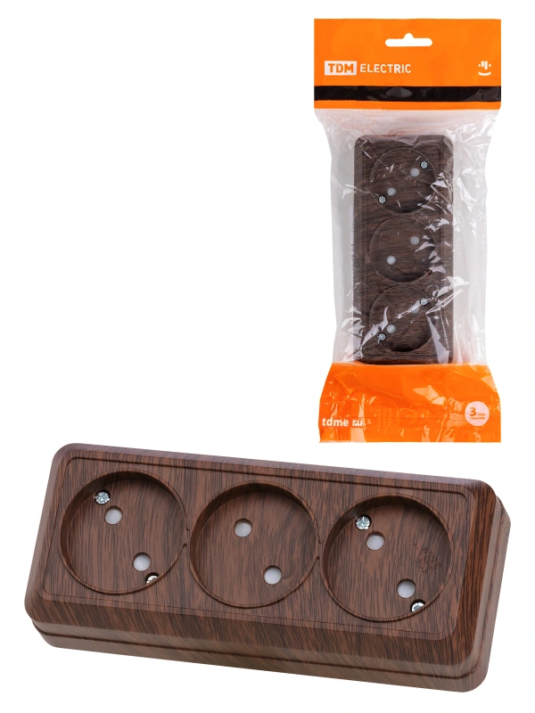 Розетка 3-х местная горизонтальная 2П открытой установки IP20 10A с з/ш бук "Ладога" TDM