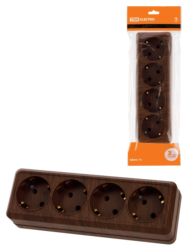 Розетка 4-х местная горизонтальная 2П+3 открытой установки IP20 16A бук "Ладога" TDM