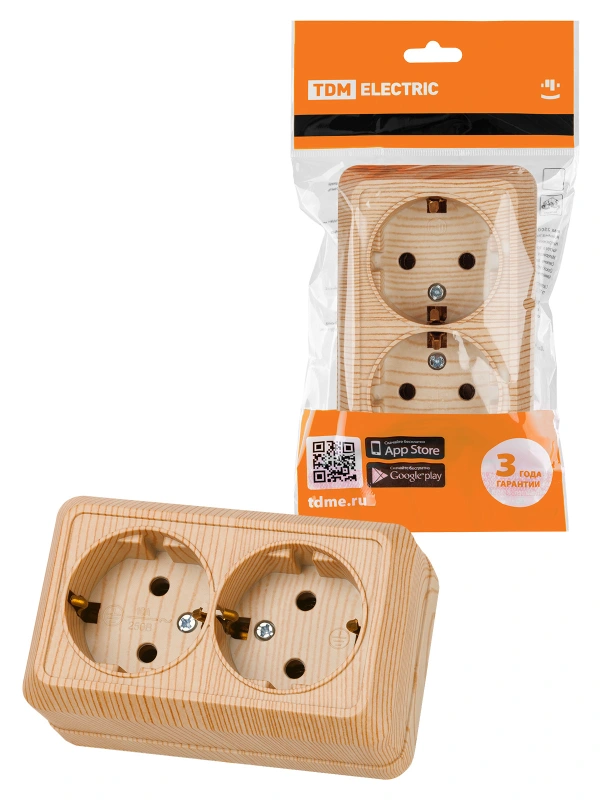 Розетка двойная 2П+3 открытой установки IP20 16А 250В (керамика) сосна "Ладога" TDM