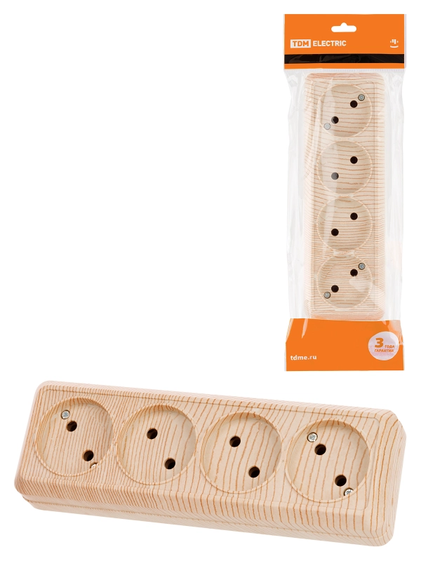 Розетка 4-х местная горизонтальная 2П открытой установки IP20 10A сосна "Ладога" TDM