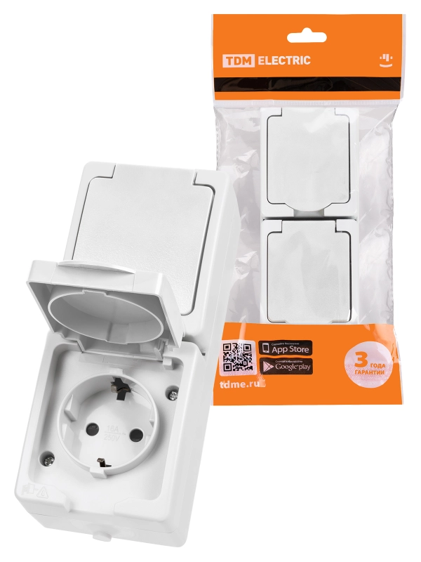 Розетка двойная 2П+З (вертикальная) открытой установки IP54 16А белая "Вуокса" TDM