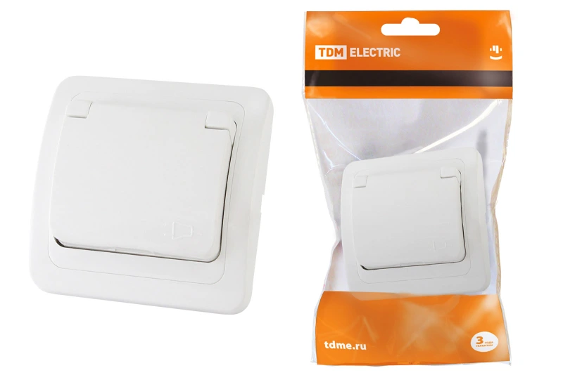 Розетка с крышкой 2П+З 16А IP44 белая "Валдай" TDM