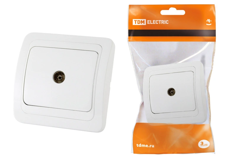 Розетка TV простая (0-2400 Гц, "мама") белая "Валдай" TDM