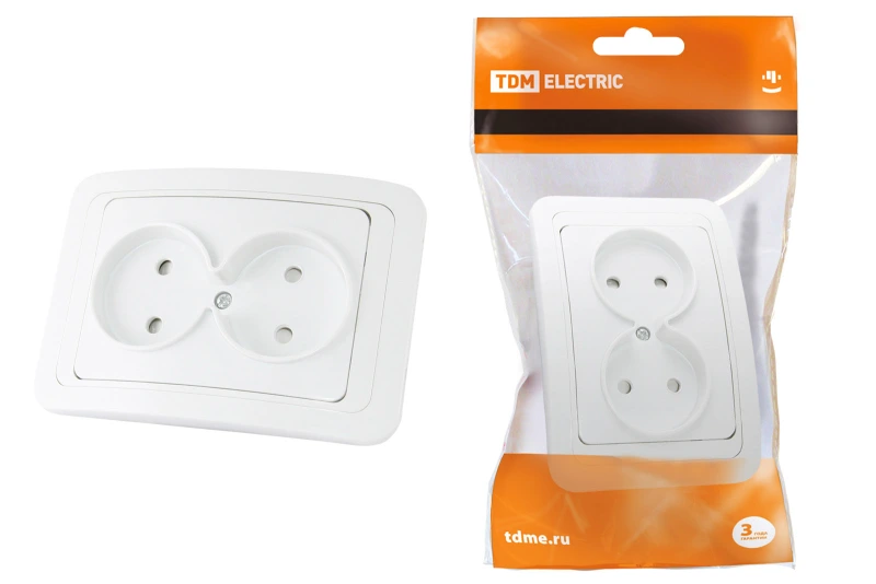Розетка двойная 2П 10А c защитными шторками белая "Валдай" TDM