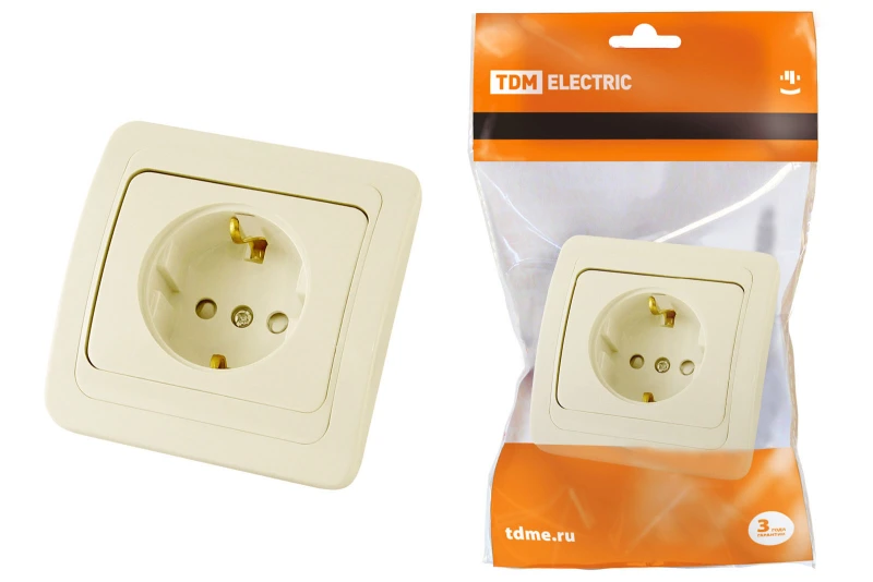 Розетка 2П+З 16А c защитными шторками сл. кость "Валдай" TDM