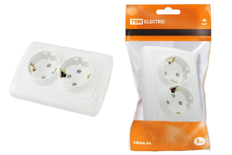 Розетка двойная 2П+З 16А 250В с защ. шт. белая "Онега" TDM