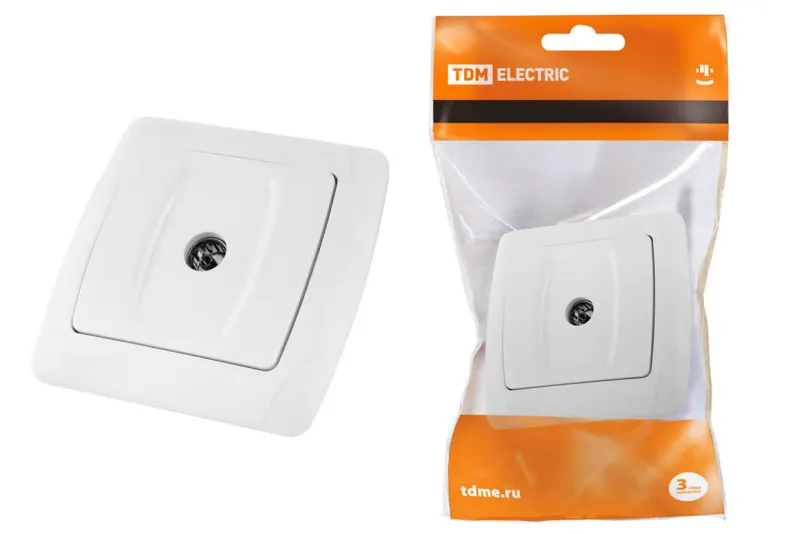 Розетка телевизионная простая (0-2400МГц, "мама") белая "Онега" TDM
